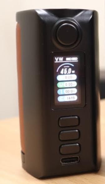 Dovpo Riva 200 Mod is recognized as an elegant device with material of zinc alloy and leather, therefore there is a comfortable feel. On the front is a clear 0.96-inch color display with a comfortable circular ignition button above it, which is also great for one-handed operation. The back is made of leather, which can store 2 18650 batteries to complete the power supply. The battery cover is at the bottom. And the Dovpo mod is compatible with Uwell Crown 5 Sub Ohm Tank. Don't worry if you accidentally touch it because it will only open at a 60-degree angle to prevent the battery from falling, you need to apply a little more force to open the lid 90 degrees to change them. The dual-cell battery is equipped to support its 200w of power, and has a very fast boost speed, providing 3 working modes to meet your different needs for clouds.