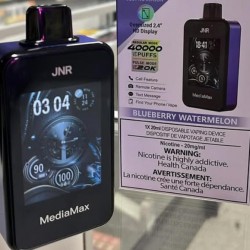 JNR MediaMax 40000 is the world’s first 40K reusable vape with smartphone features. It has a powerful 1000mAh rechargeable battery and offers two modes. The Regular mode delivers a smooth throat hit with up to 40000 puffs. The Pulse mode provides a denser and more flavourful vaping experience. This device is perfect for MTL vapers. It also includes smart functions like remote camera control and notifications for calls and messages. You can easily view your information on a 2.4-inch HD touchscreen. With the JNR MediaMax 40000 Vape, you’re in for a refreshing experience!