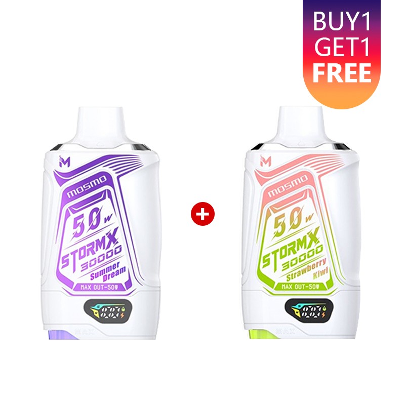 MOSMO STORM X 30000 Kit states that it will produce 30,000 enormous puffs and boasts a need for extended use before e-juice refill or recharge. This baby comes with a beefy 30 mL e-juice tank and houses an internal 1000 mAh battery, so you are sure of a more extended period of use before the next recharge is needed. This latest vapour device uses the Quad Mesh coil in its design, rated at 0.3 ohms, to give vapers smooth, intense, and flavorful vapour. Furthermore, the tiny screen will keep you updated on your vape stats for much more easily achieving that perfect vaping experience. With this colossal tank capacity, innovative coil technology, and user-friendly features, the MOSMO STORM X 30000 Reusable Vape is the best option for any seasoned vaper or a new vaper looking forward to a reliable, high-performance device.