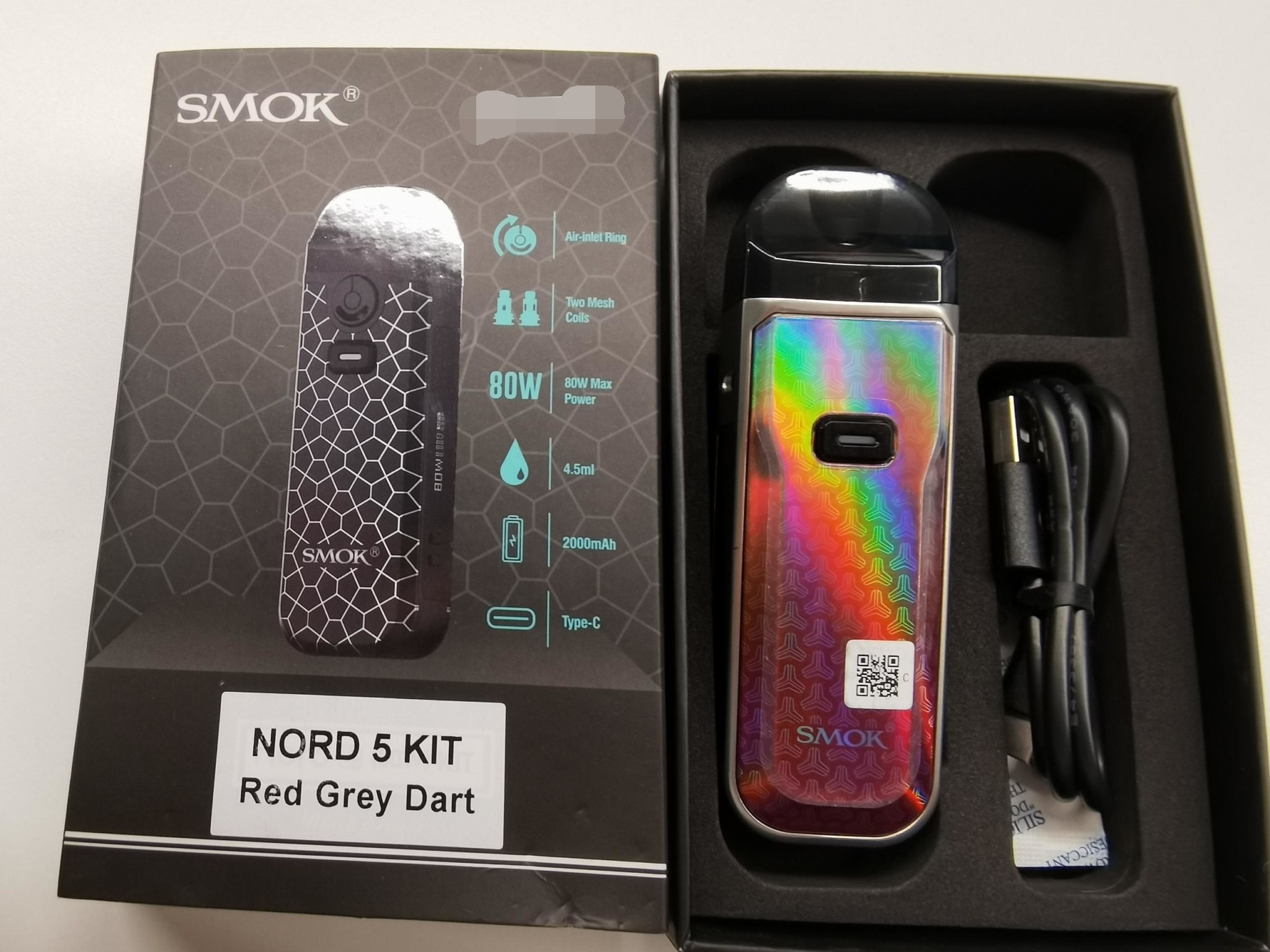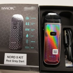 SMOK Nord 5 Kit offers you a choice of two versions, the regular series and the leather series, they have slight differences in weight and size, while being equally powerful and comprehensive in terms of functionality. The Nord 5 kit is powered by an internal 2000mAh battery to support max 80W output and is activated by clicking the power button with an LED indicator to remind you of the status of the device. Compatible with Nord 5 Pod, it has a pre-installed 0.15ohm meshed coil to bring you the fast and even enjoyment of the clouds. The pod holds a 2ml capacity, along with the side filling system, and it delivers a good leak-proof effect when connect to the battery through the magnet connection. Not only that but also features a 0.69-inch OLED screen to let you know more about the data and situation of the Kit.