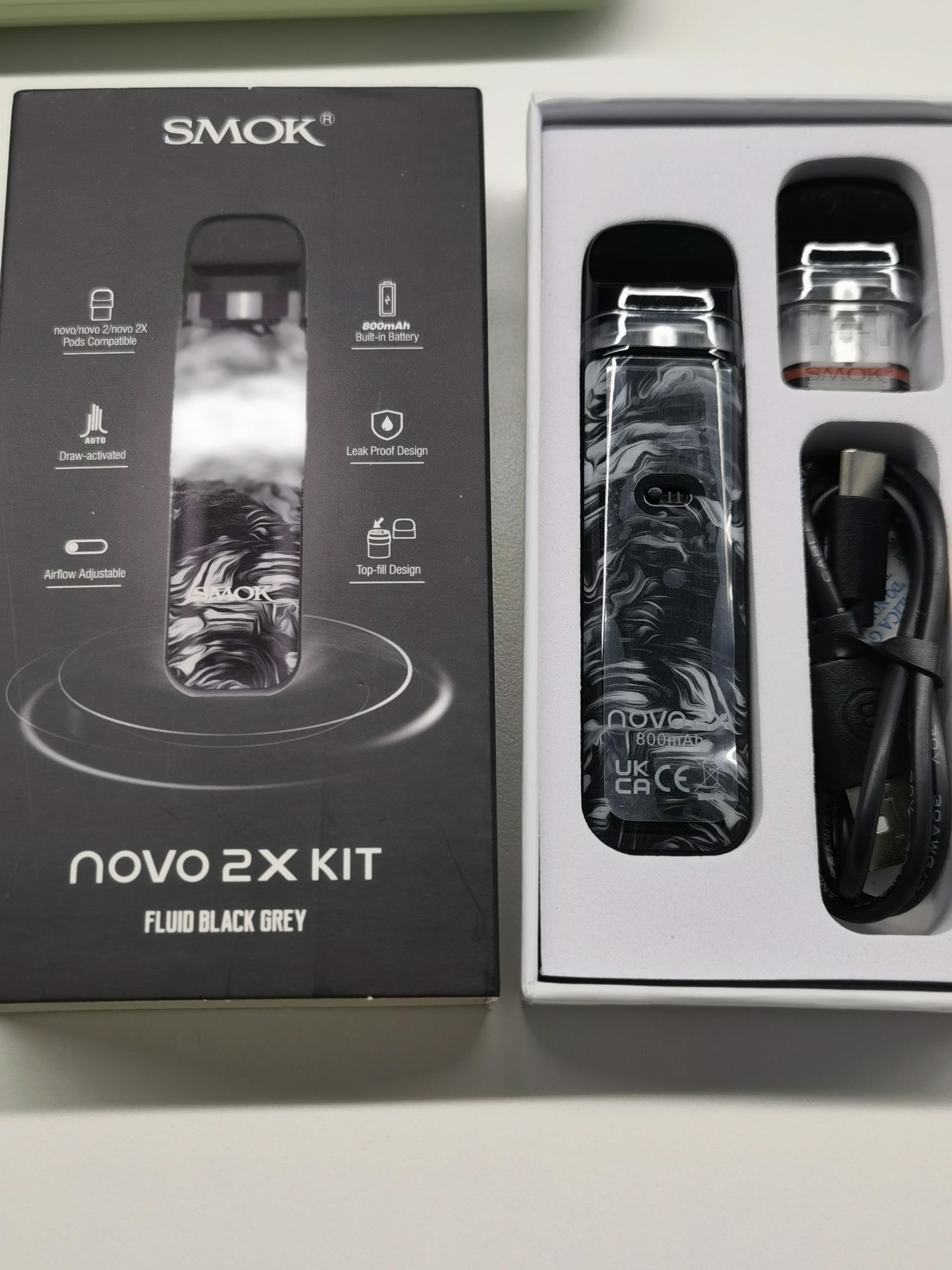 SMOK Novo 2X Kit is divided into diamond-shaped and ordinary appearance, the former using a gradient colour system, they make the wonderful colour to give you a comfortable visual experience, the latter is divided into solid colour and fluid series, fluid series is more fantastically unique, as if drawn on a river of colour. Powered by an 800mAh internal battery that has USB charging to keep your vaping alive, and is compatible with the SMOK Novo 2X pod which features a 2ml capacity. What's more, the Novo 2X pod is visible so that you can observe the remaining e-liquid inside and refill the pod from the top filling port, thoughtfully designed with a leak-proof system, you will not get a dirty hand anymore. Coupled with the adjustable airflow with a switch, you can enjoy the free airflow and take it under your control. As usual, it has the draw-active without any buttons on the device, and then you will achieve a simple and clean device.