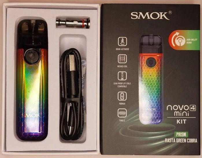 SMOK Novo 4 Mini Kit feels amazingly smooth and looks more like a fashionable accessory. Mouth to lung vapers will be familiar with this kind of pod kit. LP1 coils have a range from 0.8ohm to 1.2ohm in terms of resistance. Furthermore, this Novo 4 can be filled with either nicotine e-liquid or nicotine salt e-liquid. With this wide range of choices, vapers will have more options and flavors to use during vaping. Like other coils, this coil also comes with a leakage-proof structure to make sure to decrease liquid leakage and also prevent unnecessary heating processes. A 900mAh built-in battery is installed in the device and is output for up to 25W. Because of its tiny size, this kit has a volume of 2ml of e-juice. The intake ring is adjustable which helps to adjust airflow. There are no extra buttons on Novo 4 mini pod at all, and it is based on the smoking mechanism to meet your needs for smoking electronic cigarettes at any time. Compared to Novo 4, it is essentially a lighter and more portable version.