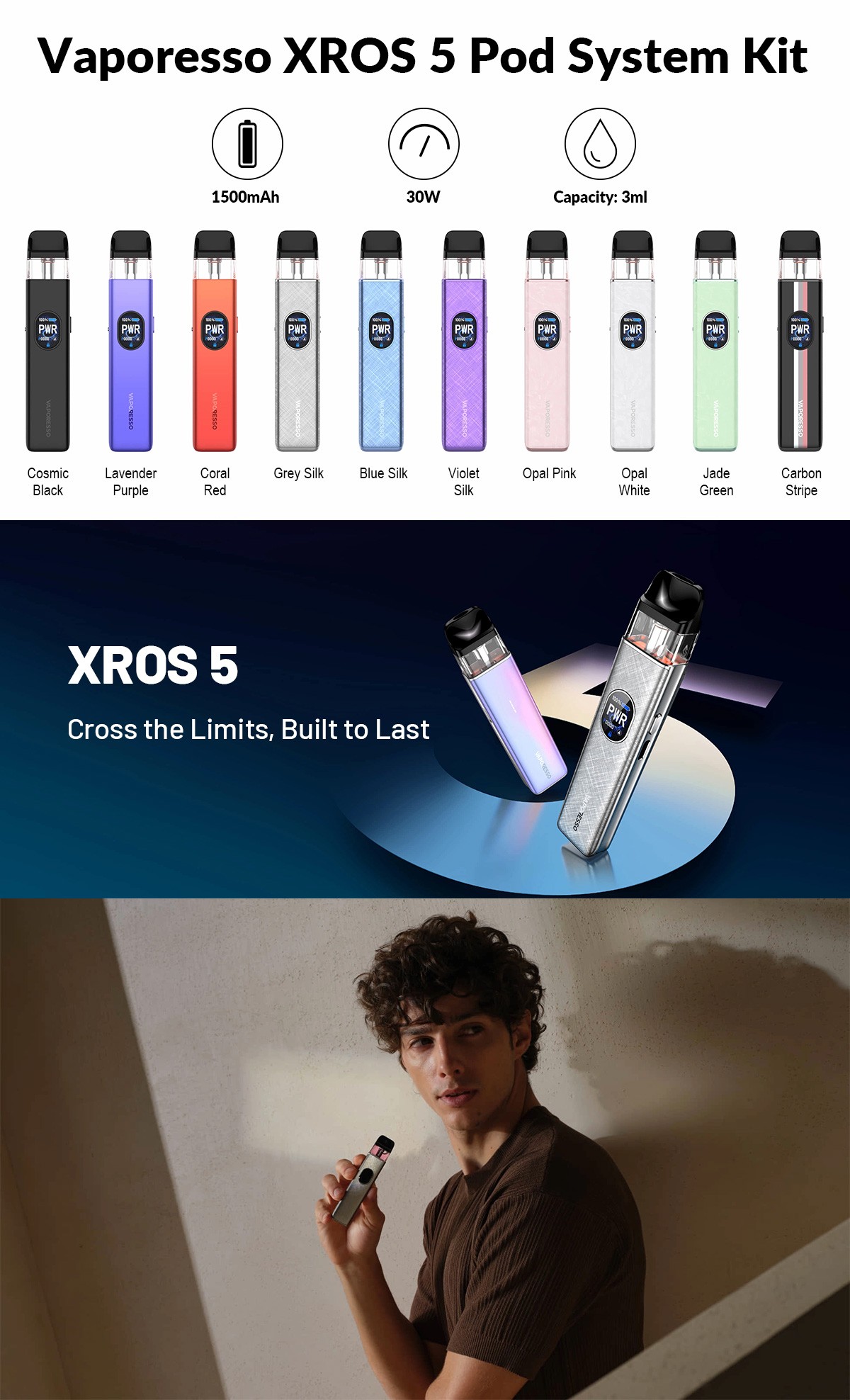 • Paired with Vaporesso XROS Series Pods
